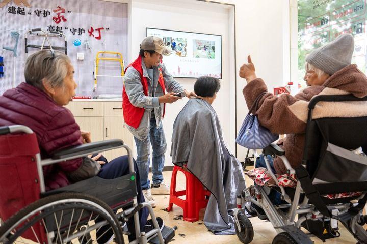 在长沙市望城区高塘岭街道湘陵社区,志愿者为老年人和残疾人士免费理发(2025年11月6日摄)。新华社记者 陈思汗 摄