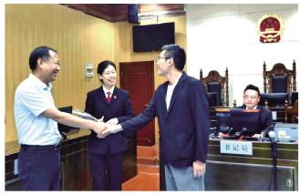 图① 郝荣琦促成案件当事人当庭握手言和。