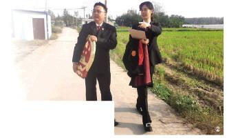 图② 郝荣琦与同事下乡开展巡回审判。